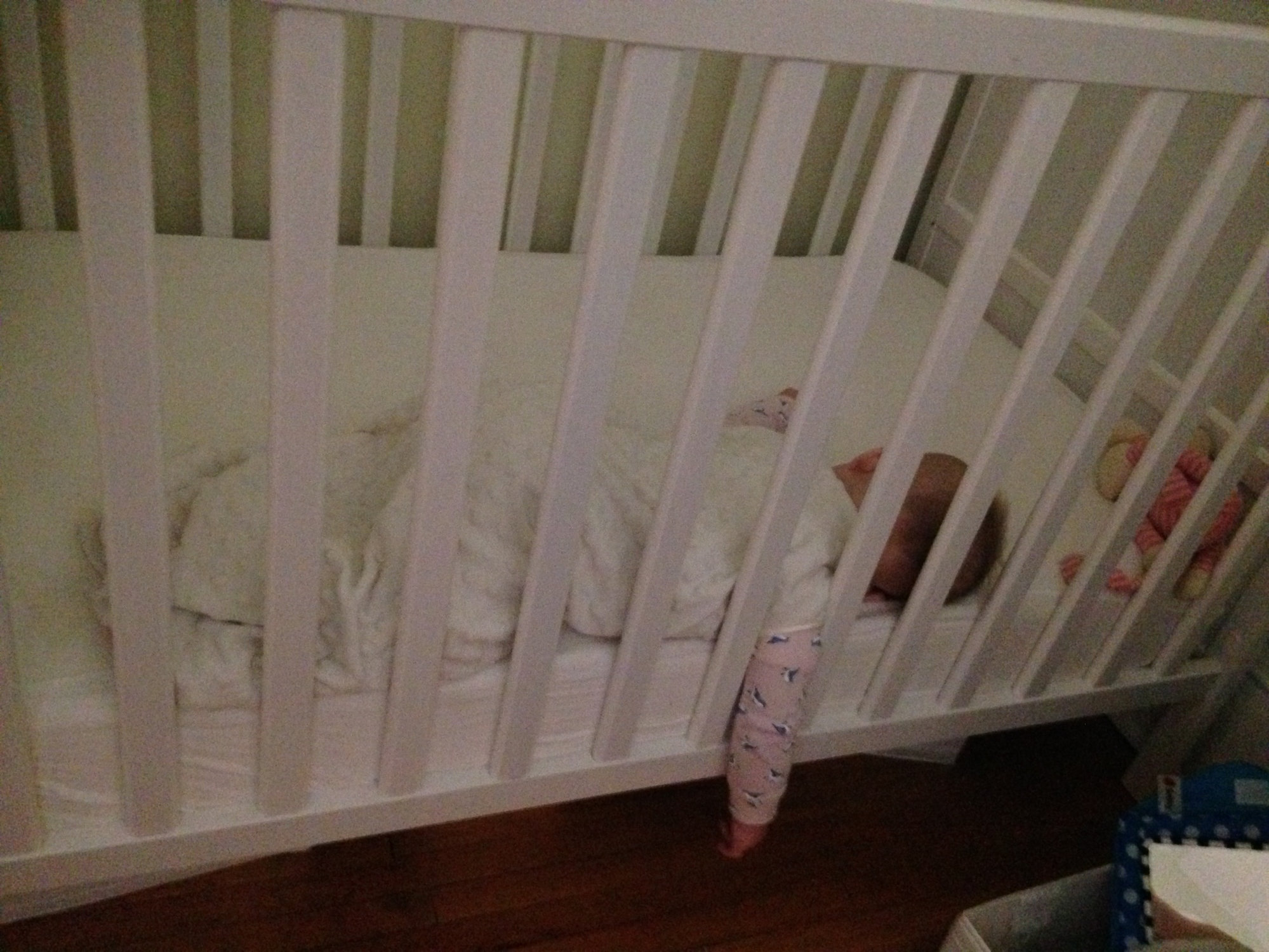 DD at 7ish months, sound asleep with her arm out of the crib.
