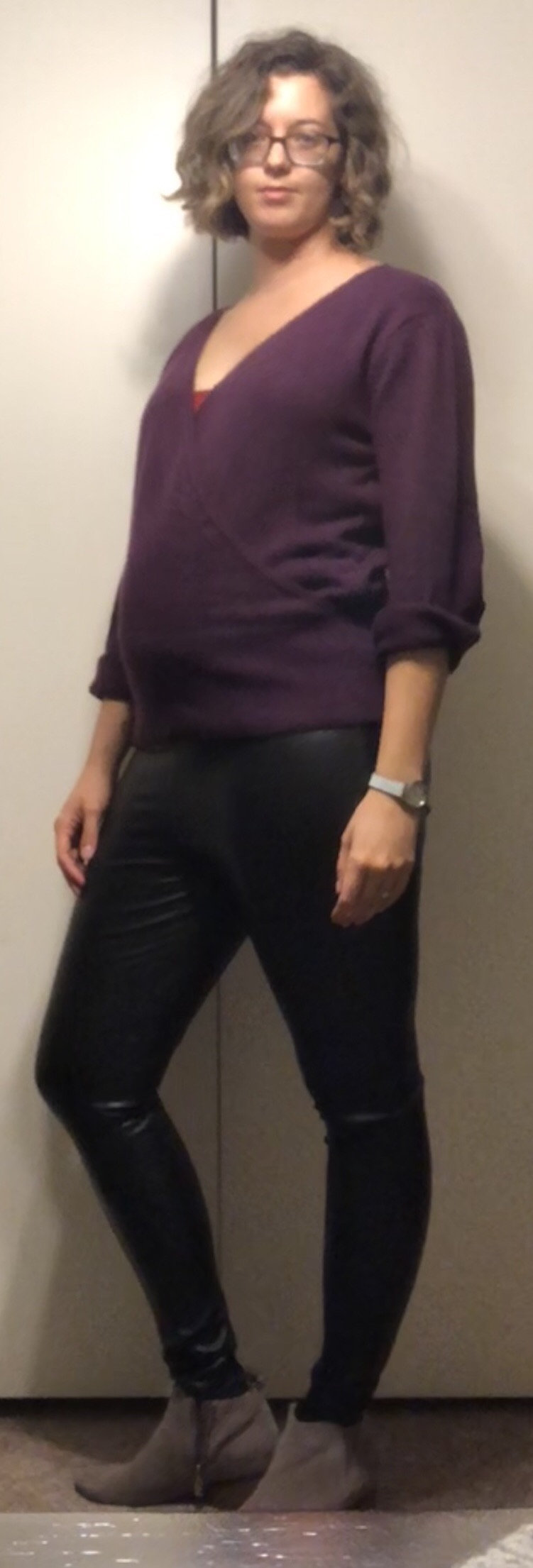 @lelkcot I have a scarf that I'm going to try to wear as a sort of wrap. I'll play around with it more tonight. I reeeeally want to wear these leggings but they're definitely a challenge to style properly.