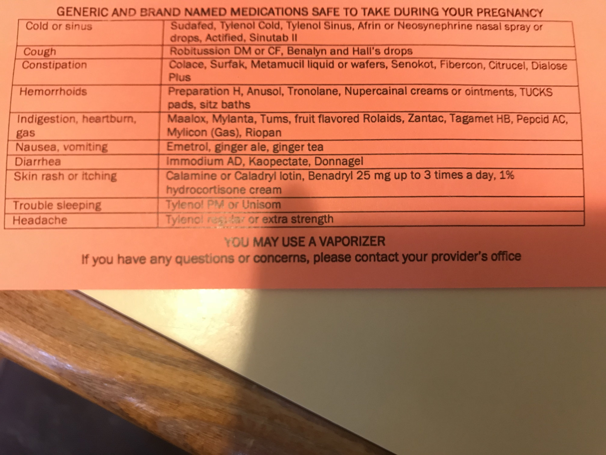 I just wanted to share this from my doctor I thought it was standard practice at every office but then I was talking to a few pregnant friends and they had never received anything like this. Anyways this is what my OB gives out on the first visit. Obviously if you have any concerns or sensitivities you should check with your doctor but I literally keep this on my fridge and love that I can refer to it when something comes up.