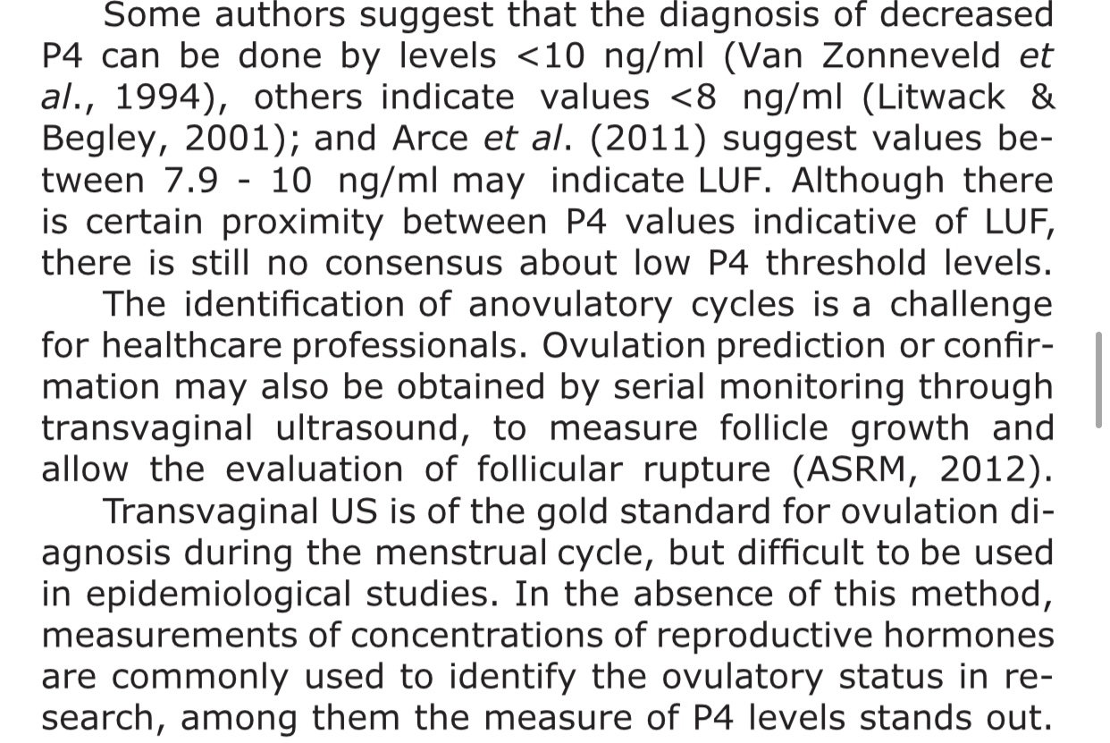 @mamanbebe this particular article suggests that it could indicate being anovulatory, specifically with values less than 8. They mention the gold standard for detecting O is with ultrasound, not just serum levels of progesterone - I’ve screenshotted the section below:
