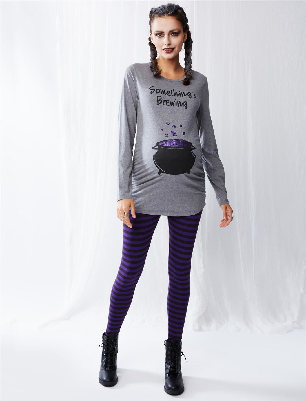 Ok so I am highly disappointed. I bought this really cut outfit off motherhood maternity to wear on halloween. I ordered an XL and hoped it would be big enough because I bought a 2x maternity shirt at target and it shrank. Anyway its freaking huge! The shirt could be a dress on me and it says to order the size you currently wear which is an XL for me. Also the front of the leggings are cut into a V. So guess what my pubic mound shows even though the pants fit. Ugh wtf. Its so cute!