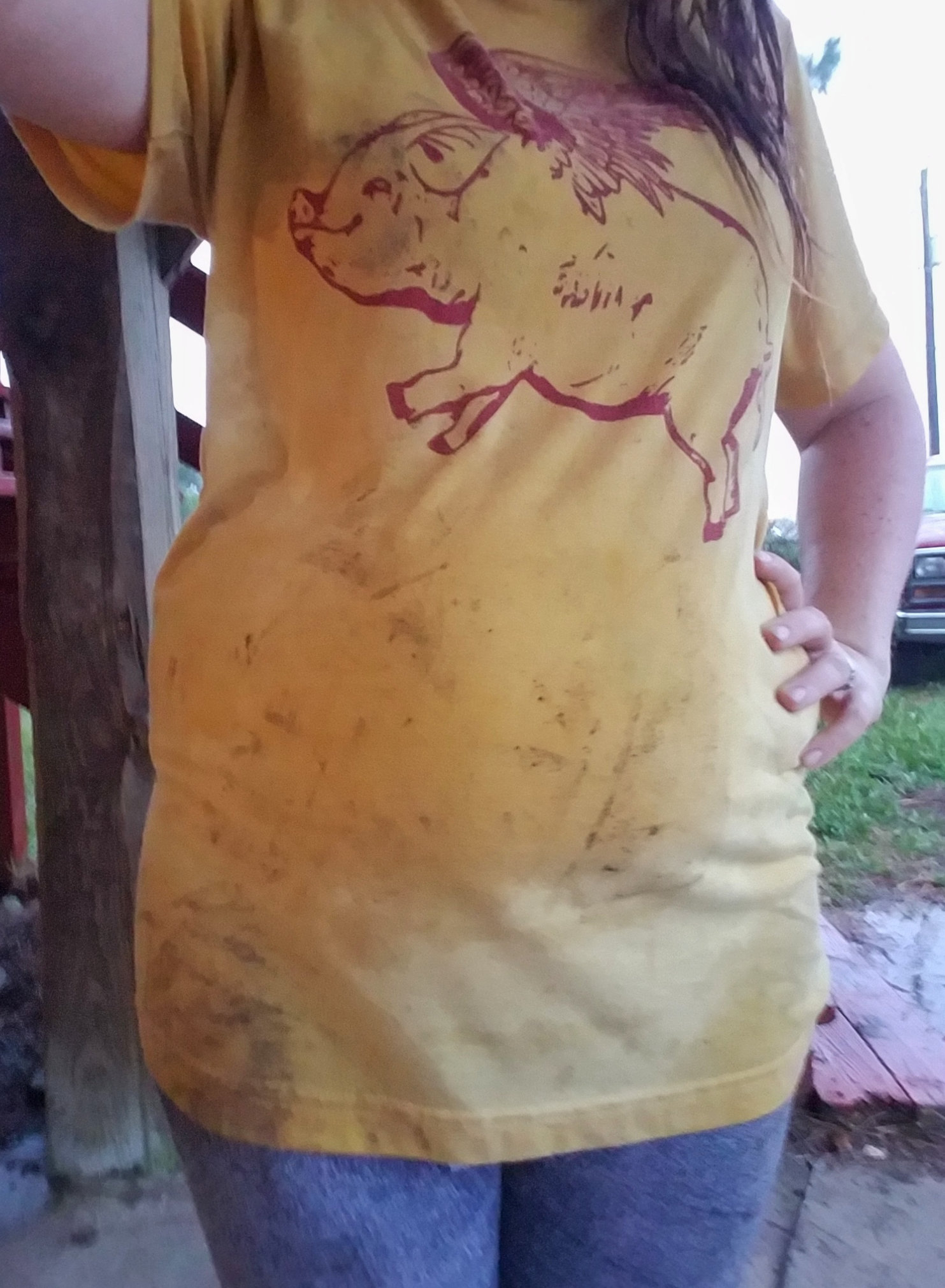I'm about to start claiming this bloat as baby because it's getting so freaking ridiculous! Had to put the animals up early because it started raining and our pooter princess goats started freaking out. Got soaked except under my bloat roll.