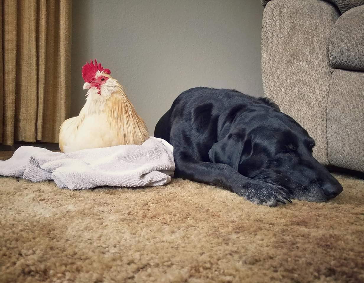 ETA our dogs stay with us. If we are in, they are in. If we are out they are out with us. Our rooster, Sweetpea, on the other hand only comes in to visit occasionally. 😉