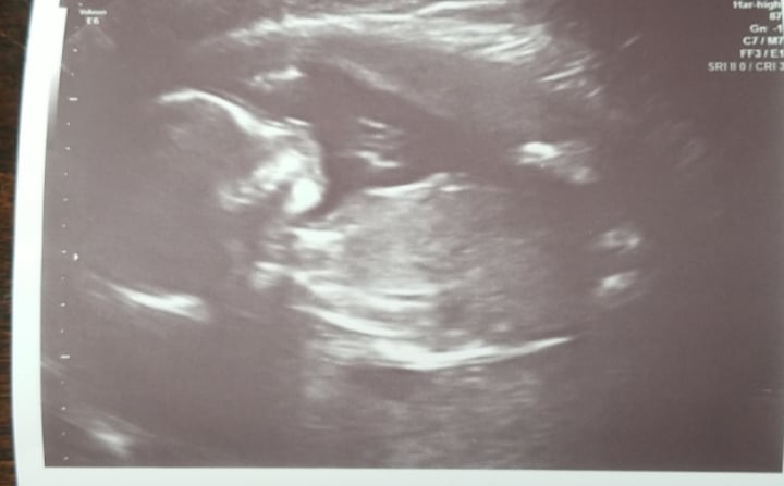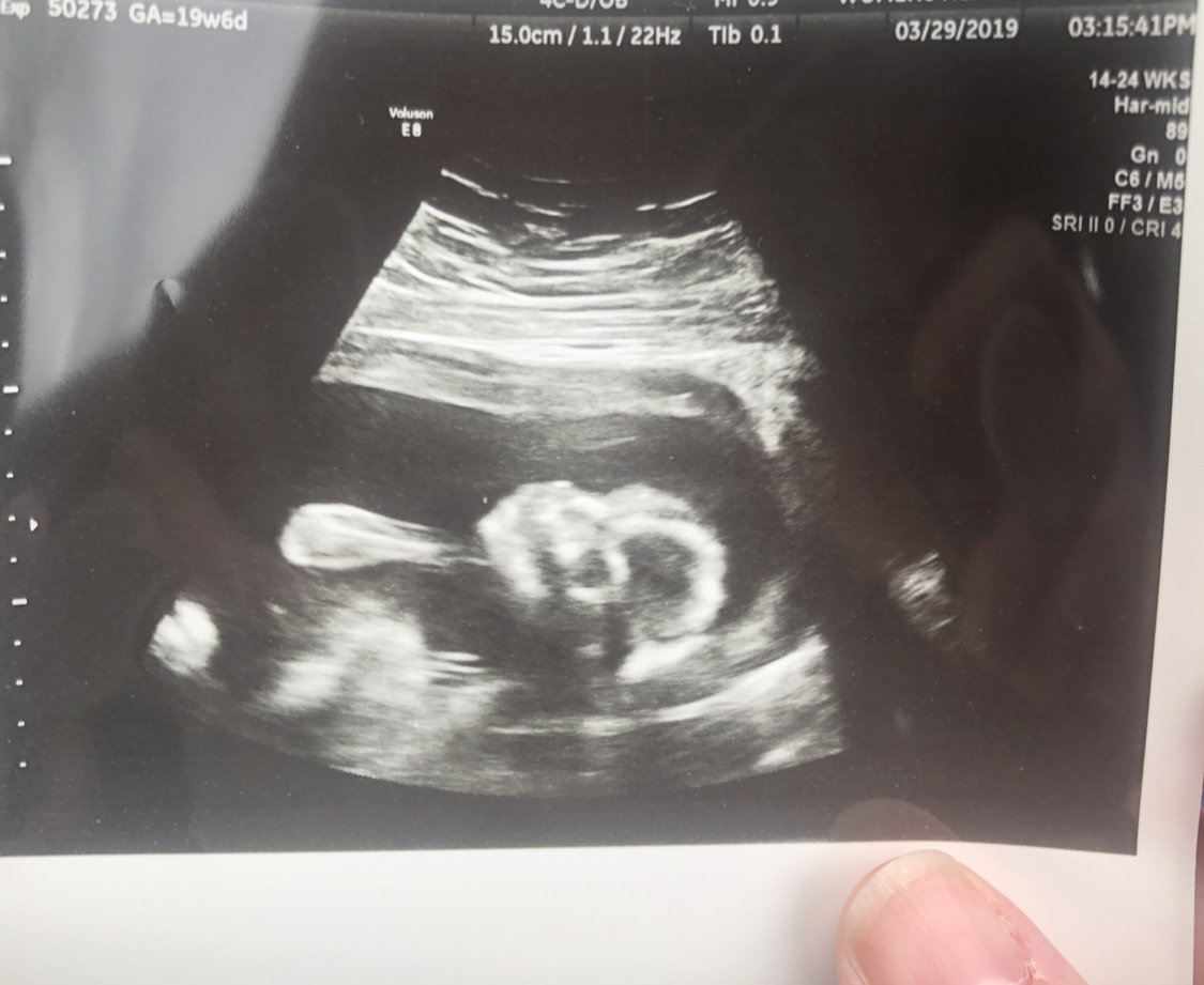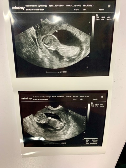 12 weeks and 4 days! We were thrilled to see our little peanut dance around and make a fist at us during our ultrasound! Nuchal screening came back normal, we are on track for 08/17/19 🙏❤