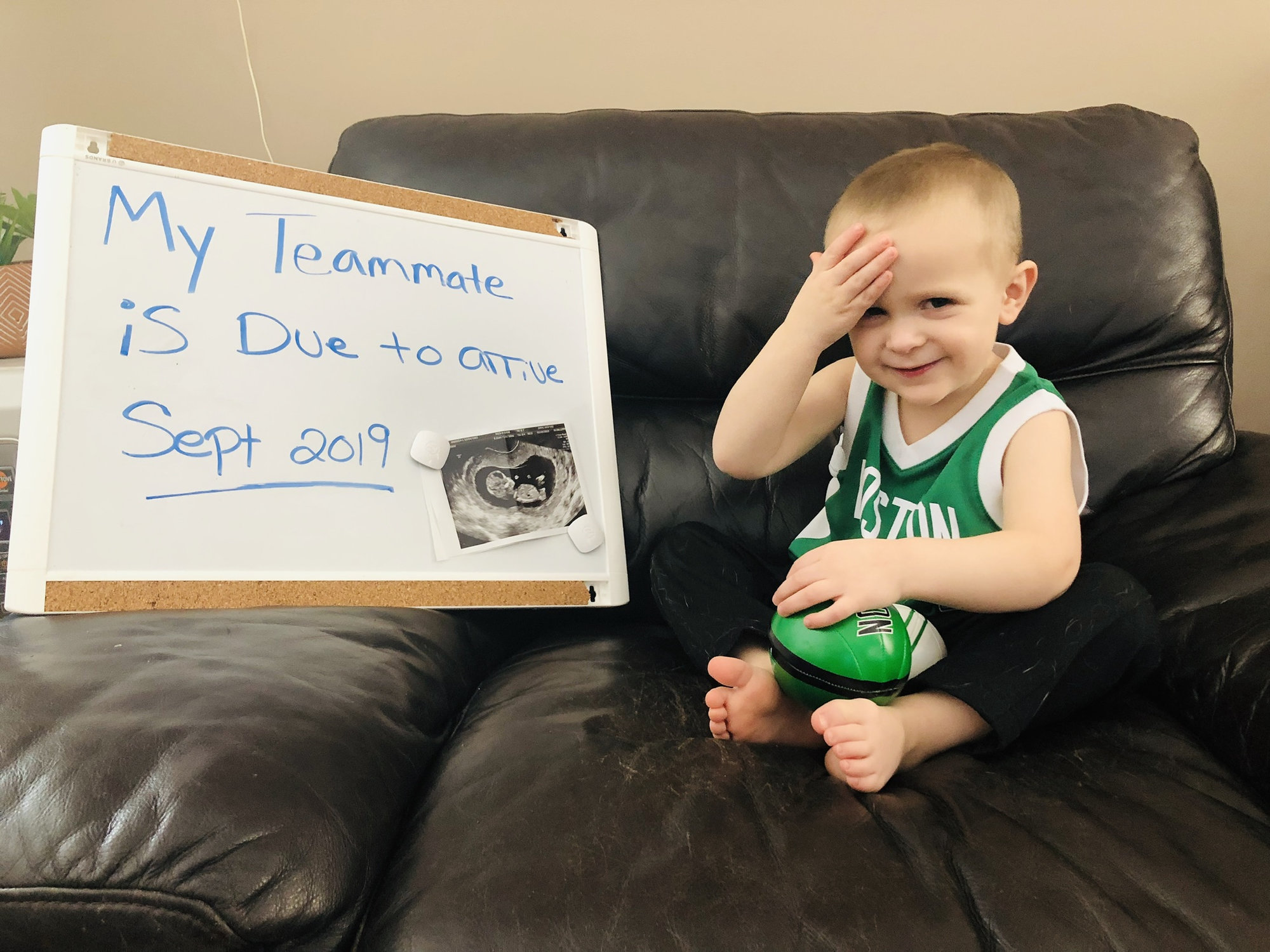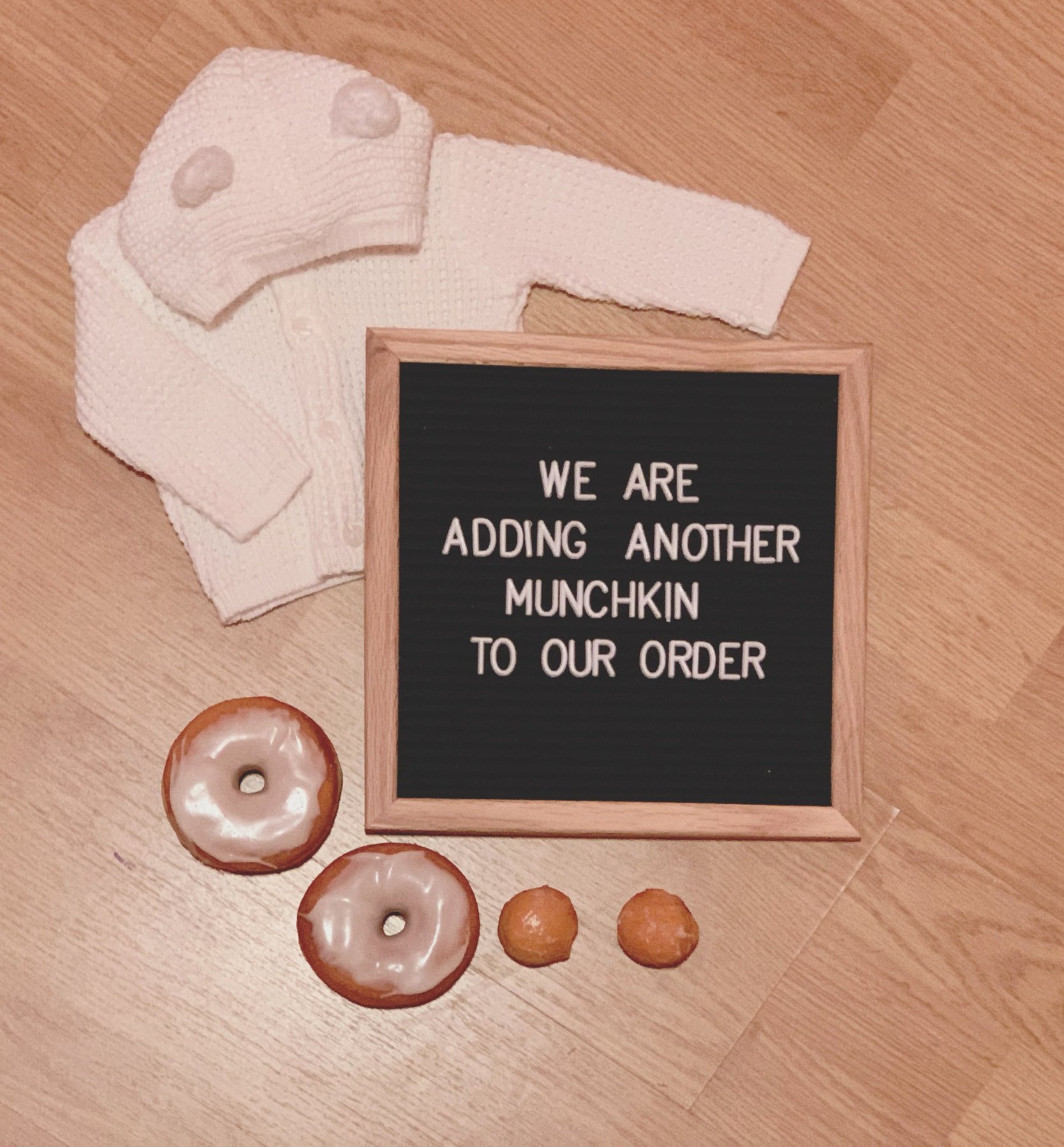 This was our social media announcement. The post said “our family is expanding by 2 feet” The baby shoes were the same ones we used to announce our first!