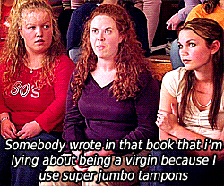 @shamrocandroll YESSSS. Yes, yes, yes! Though boo to the cramps and heavy flow. I hope I can commiserate soon. Meanwhile, get out that heating pad & take care of yourself! Also, "heavy flow" made me think of MEAN GIRLS...