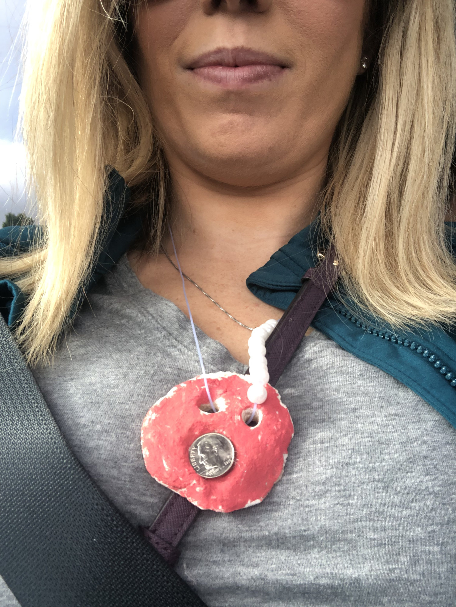 DH got me new Beats headphones (my previous ones were stolen out of my gym bag). The kids made me lots of homemade stuff including this necklace from my eldest to which he said “I got you a diamond necklace... get it, a ‘dime in necklace’?”: