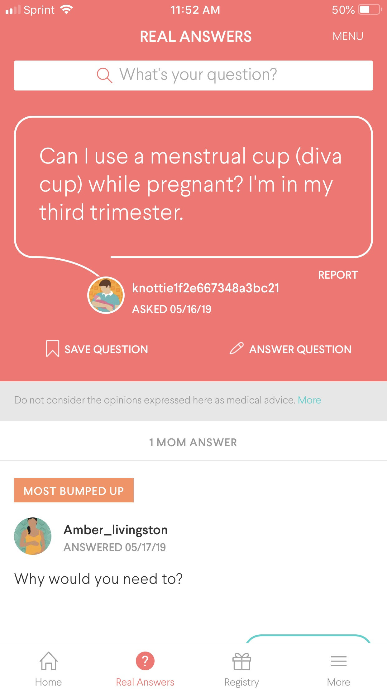 Does anyone ever read the “Real Answers” thread? I’m kind of addicted. I completely understand being a FTM and having so many questions and concerns. Don’t get me wrong, I still have concerns, with this being my second pregnancy. Anyways, I can’t help but SMH about certain questions these people ask.
