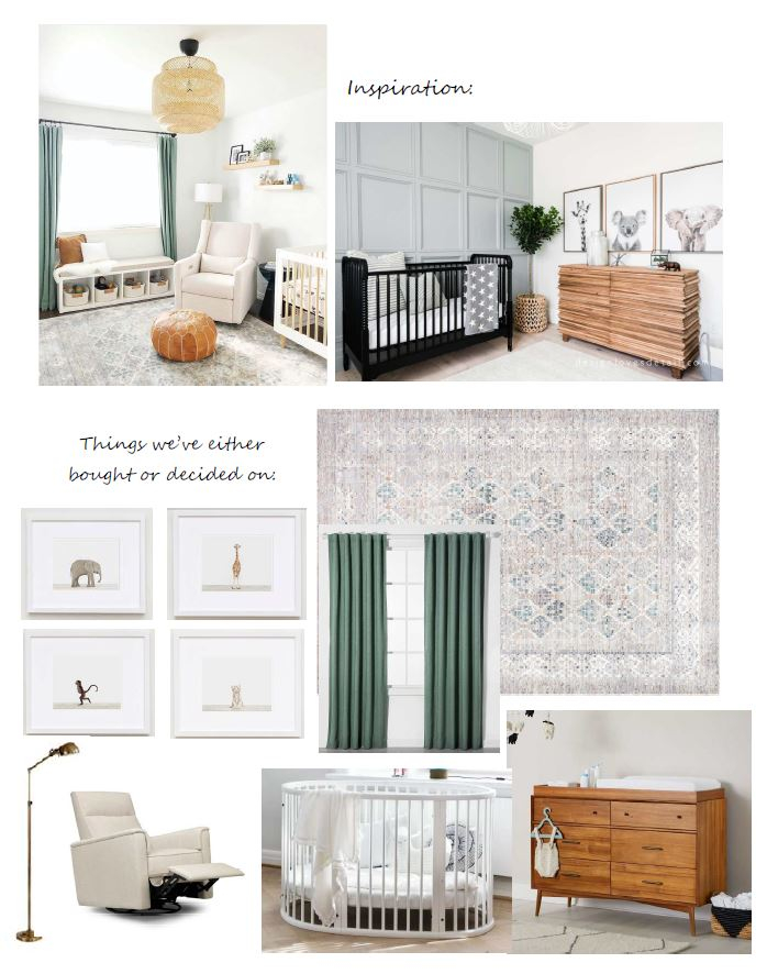 I will post more later when I’m home, but we are going for a grey/green gender neutral situation. I’m picking up Little Animal Print Shop prints tonight - jungle theme - elephant, monkey, giraffe, white tiger.