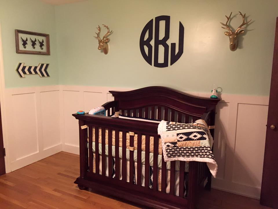 We actually started nursery prep yesterday. We’re using ods crib and got a matching dresser to use with a changing pad. Of course I hit up Hobby Lobby for their woodland/rustic decor- moose, deer, mountains, all wood and weathered looking. I still need a mattress and crib skirt and we’ll be done. I’d like to buy another crib sheet, changing pad cover, and blanket that are similar themed to switch things up every now and then.