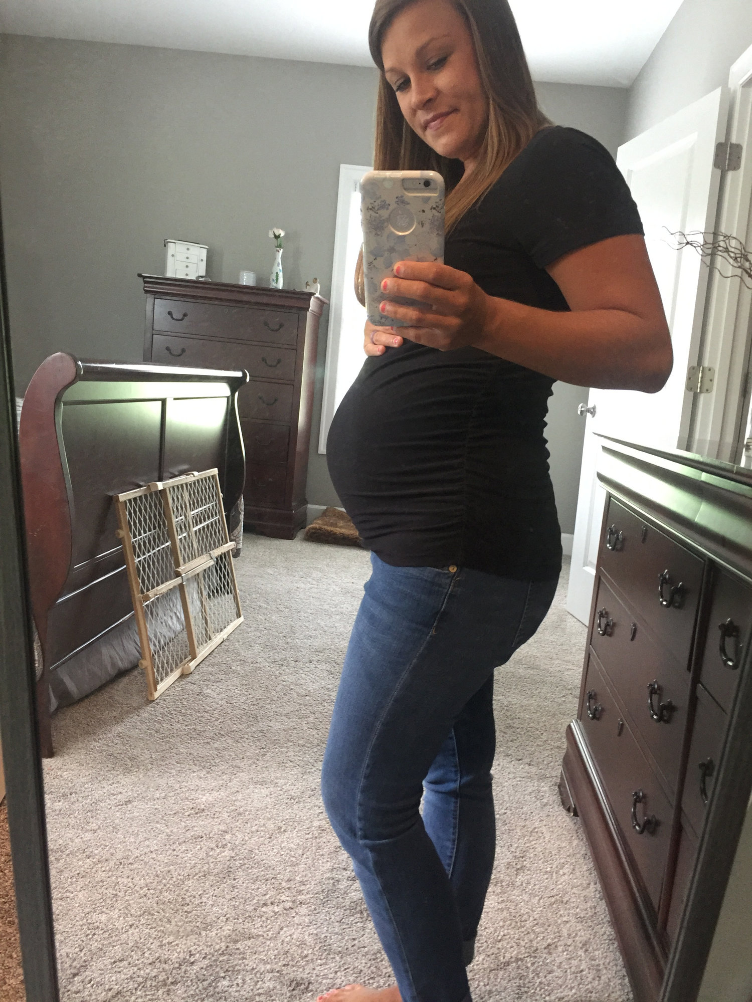 17 weeks 4 days, had a self-timer photoshoot in the nursery yday. AND I FINALLY FELT BABY KICKS and I am officially freaking out! So excited!!! Can't believe we are all almost halfway here!