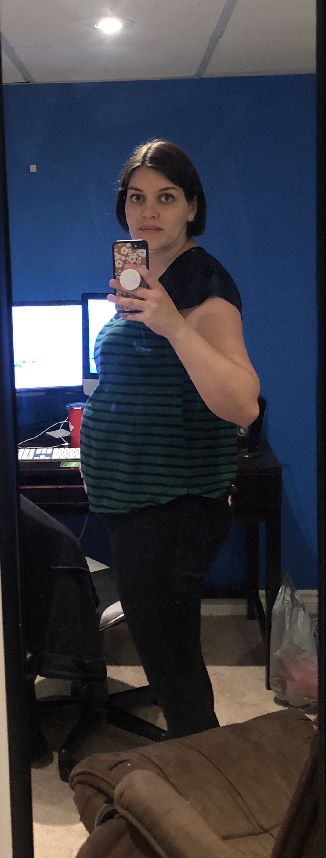 18w2d - I have a work/community meeting tomorrow that I’m hoping to hide this with a huge tent of a dress. 🤞🏼