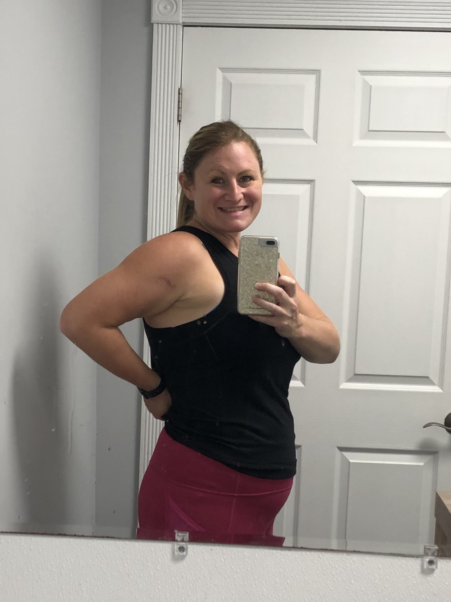 15 weeks today, STM. Bump is still smaller this time around 🤷🏼♀️ Also the gym bathroom has much better lighting and I’m already wearing the spandex.