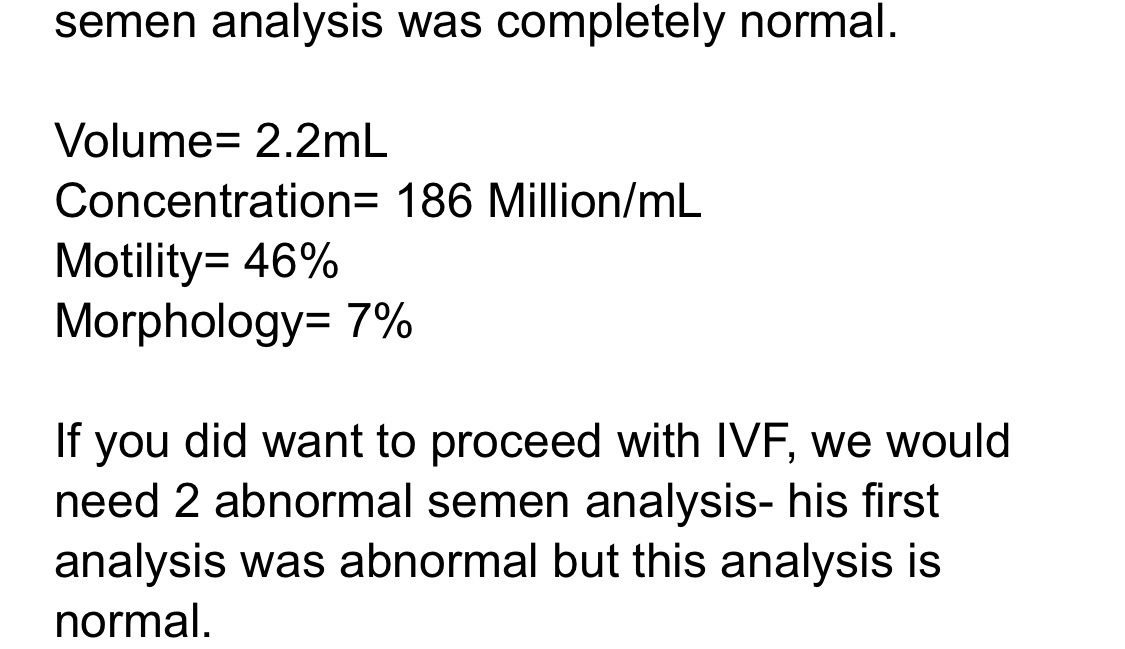 Good / bad news. My IVF coverage is amazing, but biased against women with bad eggs since we need two abnormal SAs to proceed and only have one. Glad it went well, but I’m still not pregnant.
