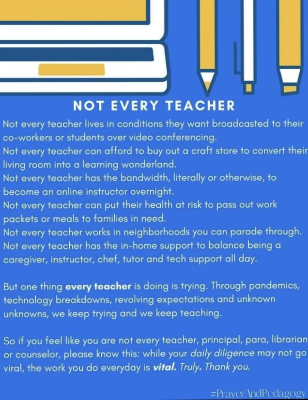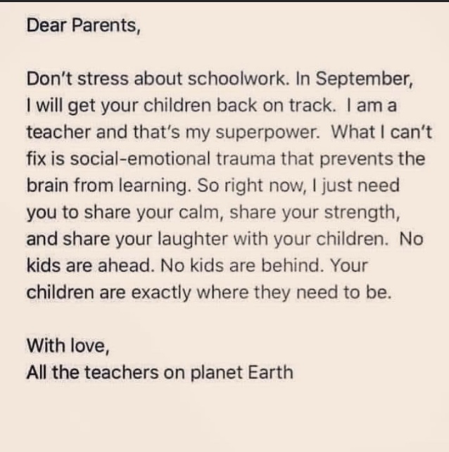 @emeraldduchess I’m so sorry for the stressful turn of events. What others have said already is undoubtedly true: you are doing the absolute best that you can under these circumstances. In-person school is also finished for the year here, and there is talk of starting next school year virtually as well. Very very challenging. I have friends in education all across the country, and everyone is super stressed by the unknown nature of it, plus the sheer hours on the computer trying to make it all work. And for those w families at home to take care of and trying to teach at home on top of teaching their own classes, it’s a real nightmare. Here are a couple of thoughts we’ve been sharing on the whole experience. Some statements resonate more than others.❤️