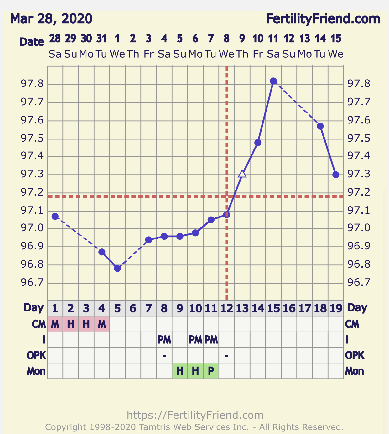 R/R: Happy Hump day!! Well, AF is supposed to come today so we will see if that happens or not. I woke up for work with mild slight dull cramping, so Im pretty sure she will make an appearance later today. Bleh 😔 I'll just hang out here until that happens. My temps haven't gone down though so maybe they will once AF actually comes. I dont want to go to work today lol ugh..