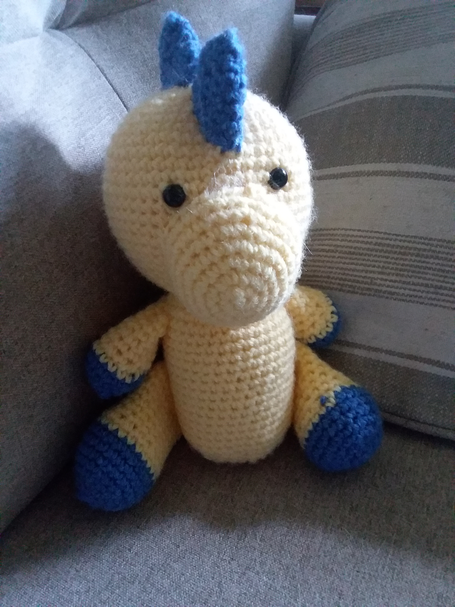 How cute is this little dino?? I made it for a friend as a gift. Can't wait to give it to her! Sewing on the legs and spikes was a pain in the butt, but totally worth it! Sorry the pic is so huge. Thank goodness for spoilers!
