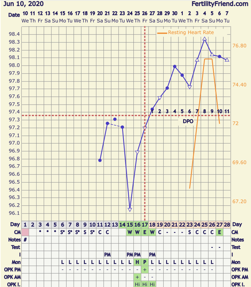 Testing: BFN today with a dollar store cheapie. I guess I may test Friday if there are no signs of AF, but this combined with the drop in RHR seem to indicate I'm out this cycle.