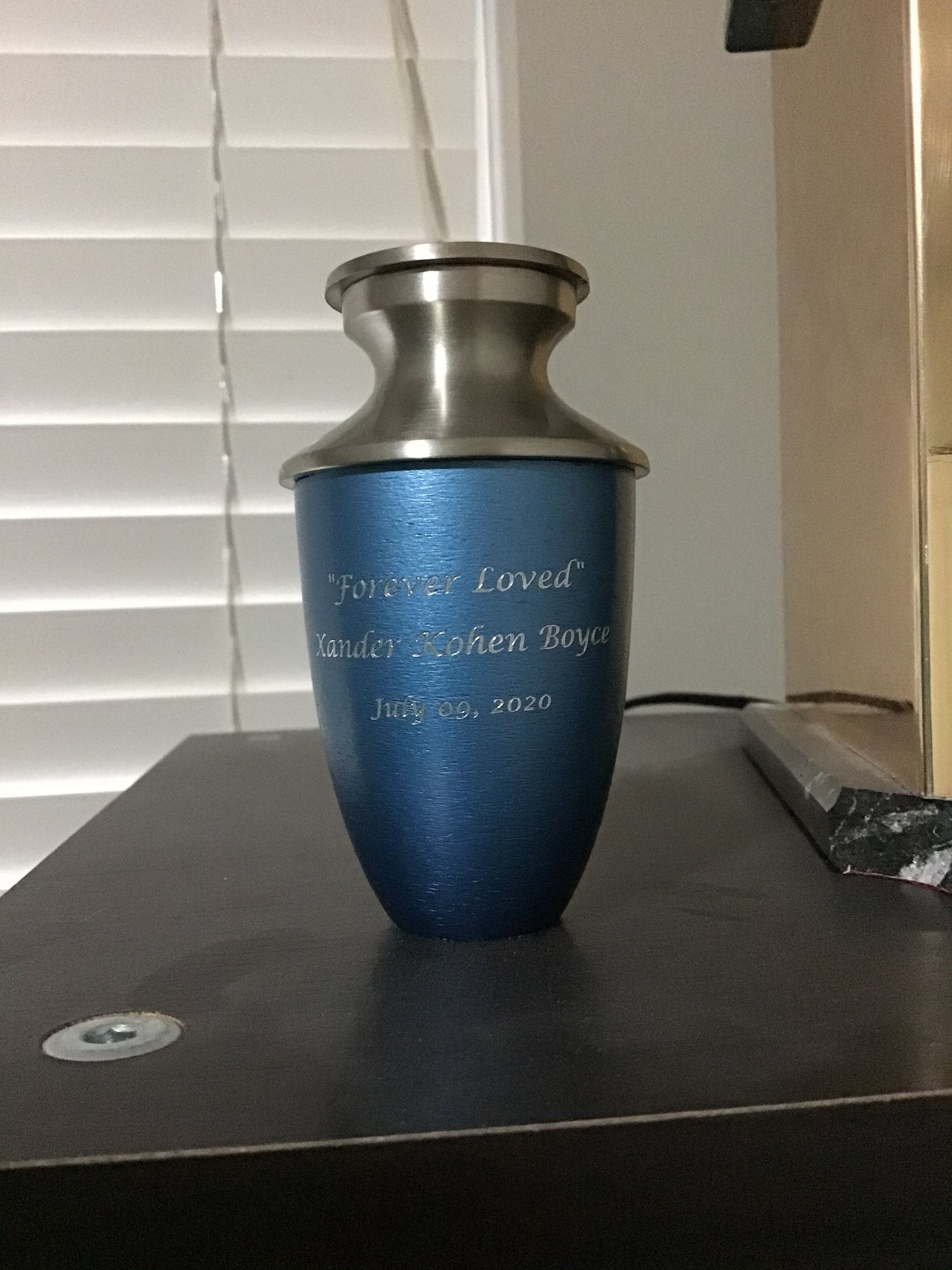 Yesterday my DH and I received our sons engraved urn and ashes back. I’m pleased with how it all looks and turned out and very happy that he’s finally home with us where he belongs ❤️ It is a relief to have the ashes so I can continue to move forward and heal but makes me so sad as I Miss him sooo much 😢 My sweet baby boy!