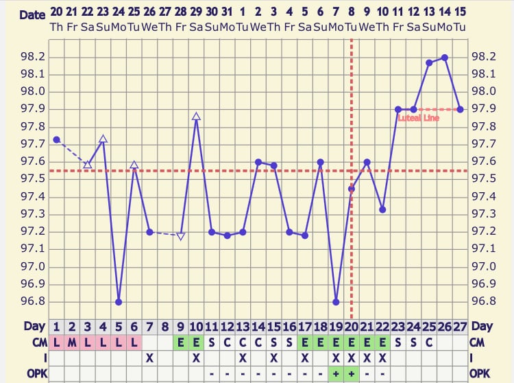 • @runningoncookies I agree with FF, even without your dip today! But when I temped I always had a “fallback rise” like that on 2-3 dpo so it seems totally normal to me.