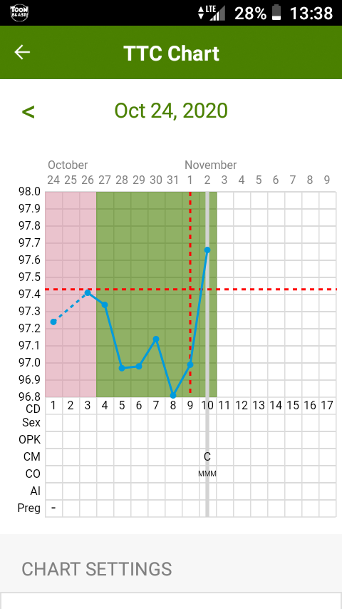 I had a long AF this cycle, 9 days, and when I temped this morning my chart have me crosshairs. I normally have 5 day af max and don't O until around CD 15. My cm/ cp doesn't match with crosshairs. I don't know what's happening this cycle.