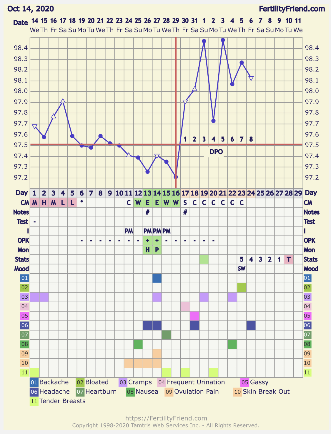 CD/DPO: 13/1... not tracking so hard to say exactly so could be 2 DPO as well.