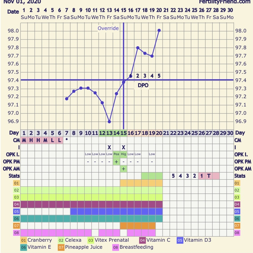 CS/Q: I manually did my ch this cycle but I just didn’t agree with anything it was giving me. 🤷🏻♀️ But I had a nice temp spike that made me feel a lot better this morning.