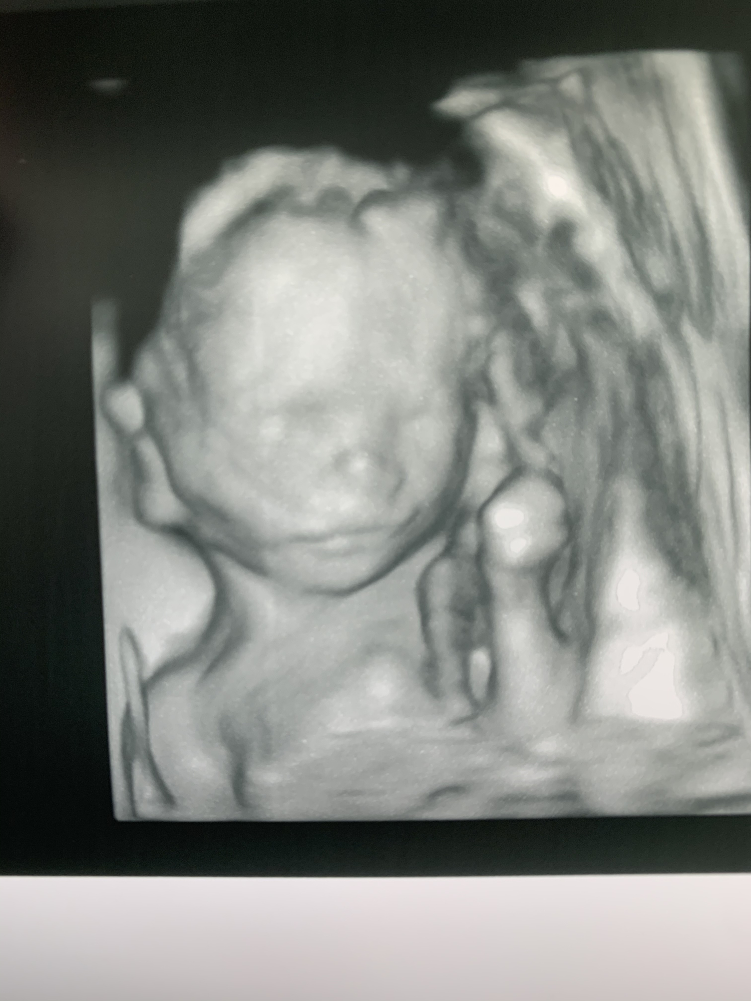 I had my anatomy scan. He is measuring big in the 78th %tile and absolutely perfect. He was moving so much she struggled to get some measurements. She got some incredible 3D pictures of him. Look at that sweet face! 😍