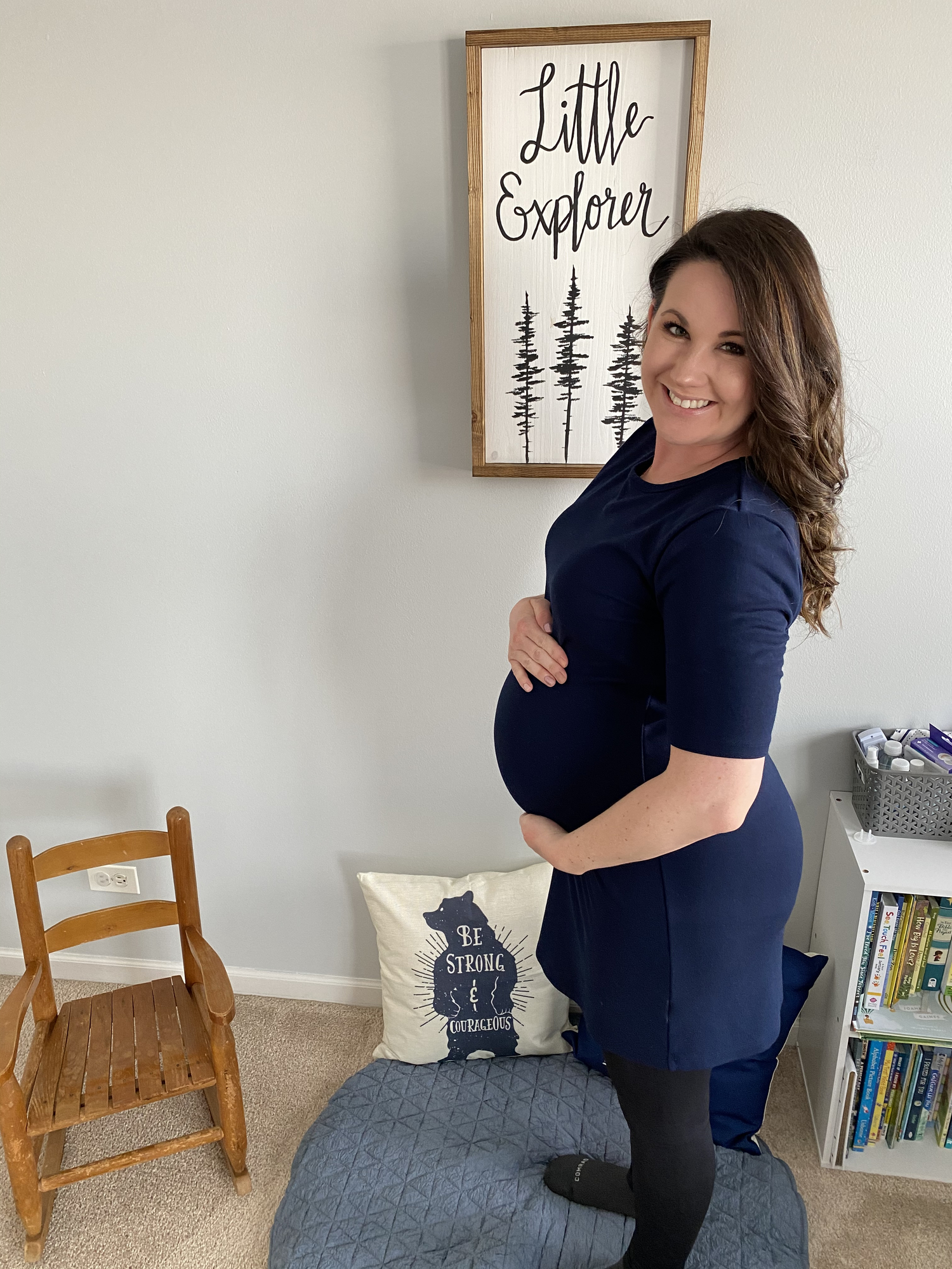 - How are you feeling this week? Very pregnant! I take daily naps. My heartburn has lessened but isn't completely gone. I still get queasy in the morning after breakfast. My stamina is not great so I try to get done mini projects around the house as I'm able. Fortunately most of the big baby prep work is complete. DH and I are both excited and terrified about becoming parents in the very near future!