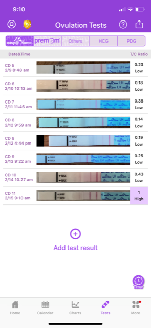 This is my second month of TTC. I am 35, and have regular cycles between 24-28 days, with 26 days being my average. This month I decided to start temping, and use OPK strips. I am also using pre-seed because I know I do not have enough cervical mucus, maybe because of my age. I DTD with my husband on cycle day 7, 9, and 10 so far, and currently on cycle day 11. I started using OPK tests from cycle day 5 when my period ended just to make sure I am not ovulating earlier than what I expect. Today's test looks very dark, about equal to the control line. I