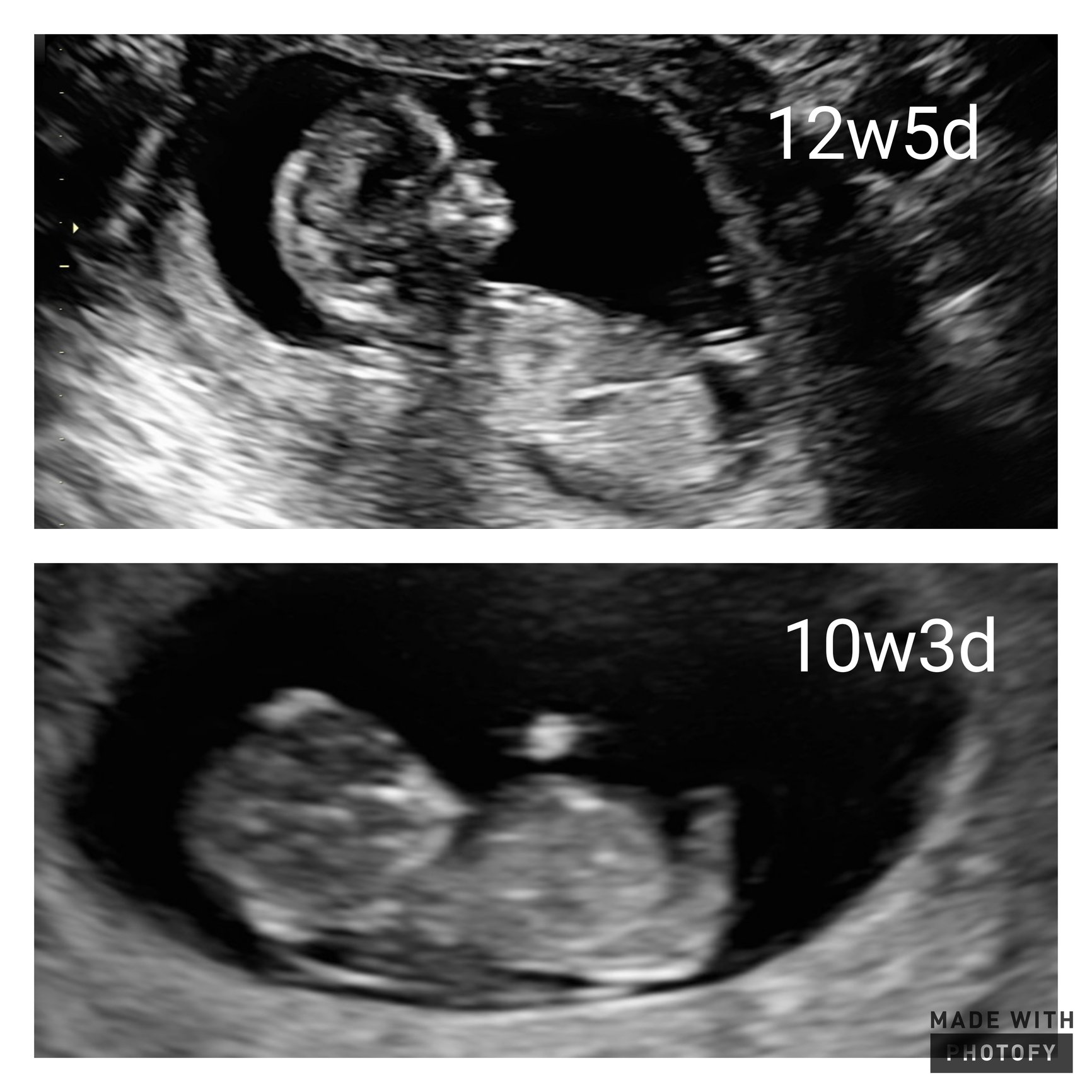 • I have ultrasound pictures for both my kids since 6 weeks and this poor 3rd child is prob gonna have one at 12 weeks. When I go in for my 12 week test I will ask for an image. I’m glad my prediction was not far off. Lol.