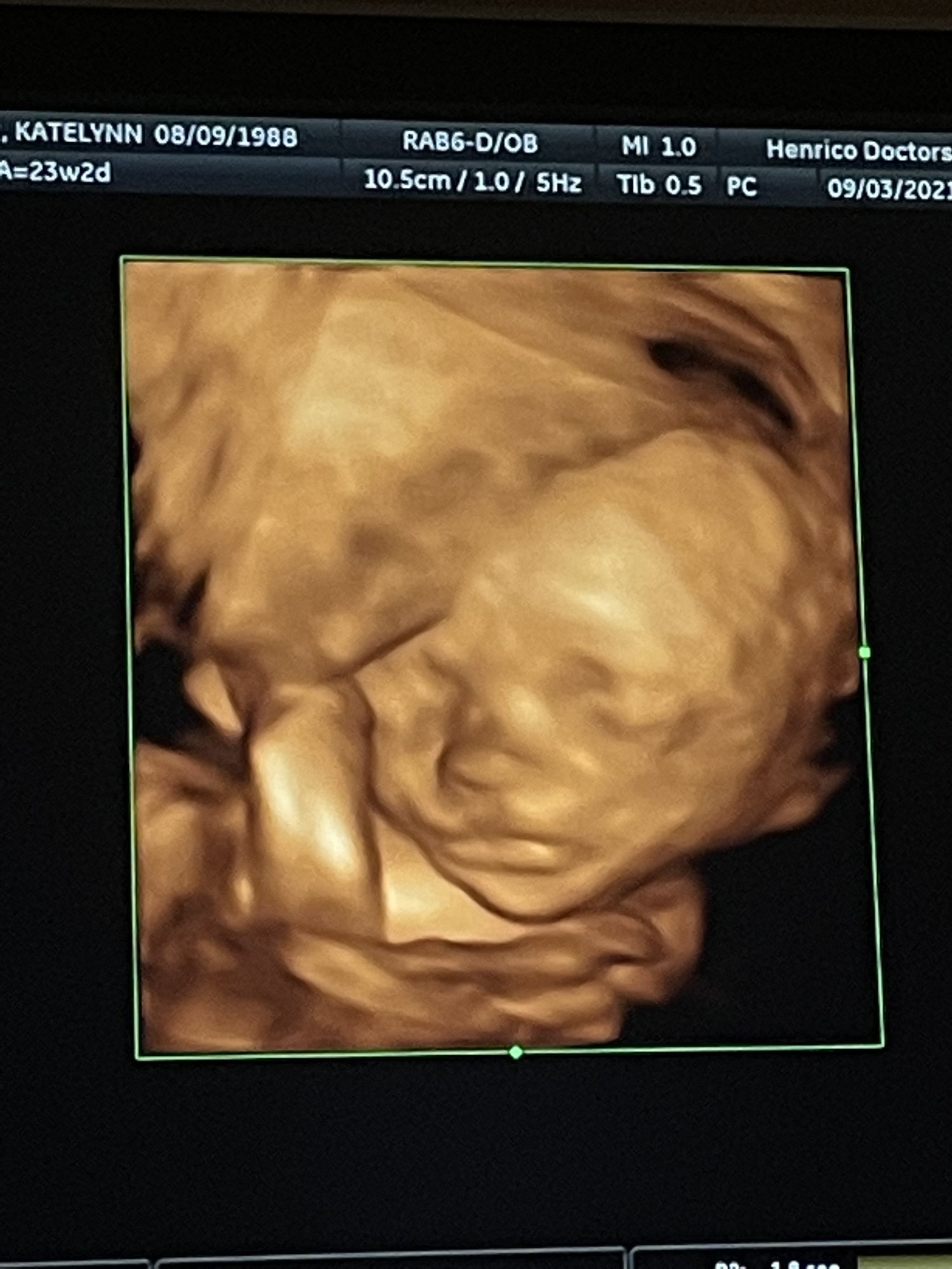 • 27 weeks with my little wiggle worm! He moved so much that this was the best we could get for 3D😂