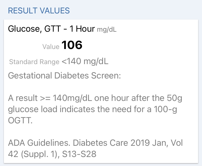 • I just did the one hour yesterday and my results are online today.  It says I got a 150 which I think means I’ll have to do the 2 hour now- ugh!  I don’t mind so much it’s just my poor veins.  It already takes the hematologist multiple tries to get a vein (this time we were lucky and got one in two tries!) so doing multiple draws will not be fun for me or the staff! So we will see what my doctor says.  I see my OB next Friday.  I’m a big gal already and gained a bunch of weight so not too surprised.  I didn’t fast or anything before - just avoided sugar in the AM.  I didn’t want to game the system so we will see.