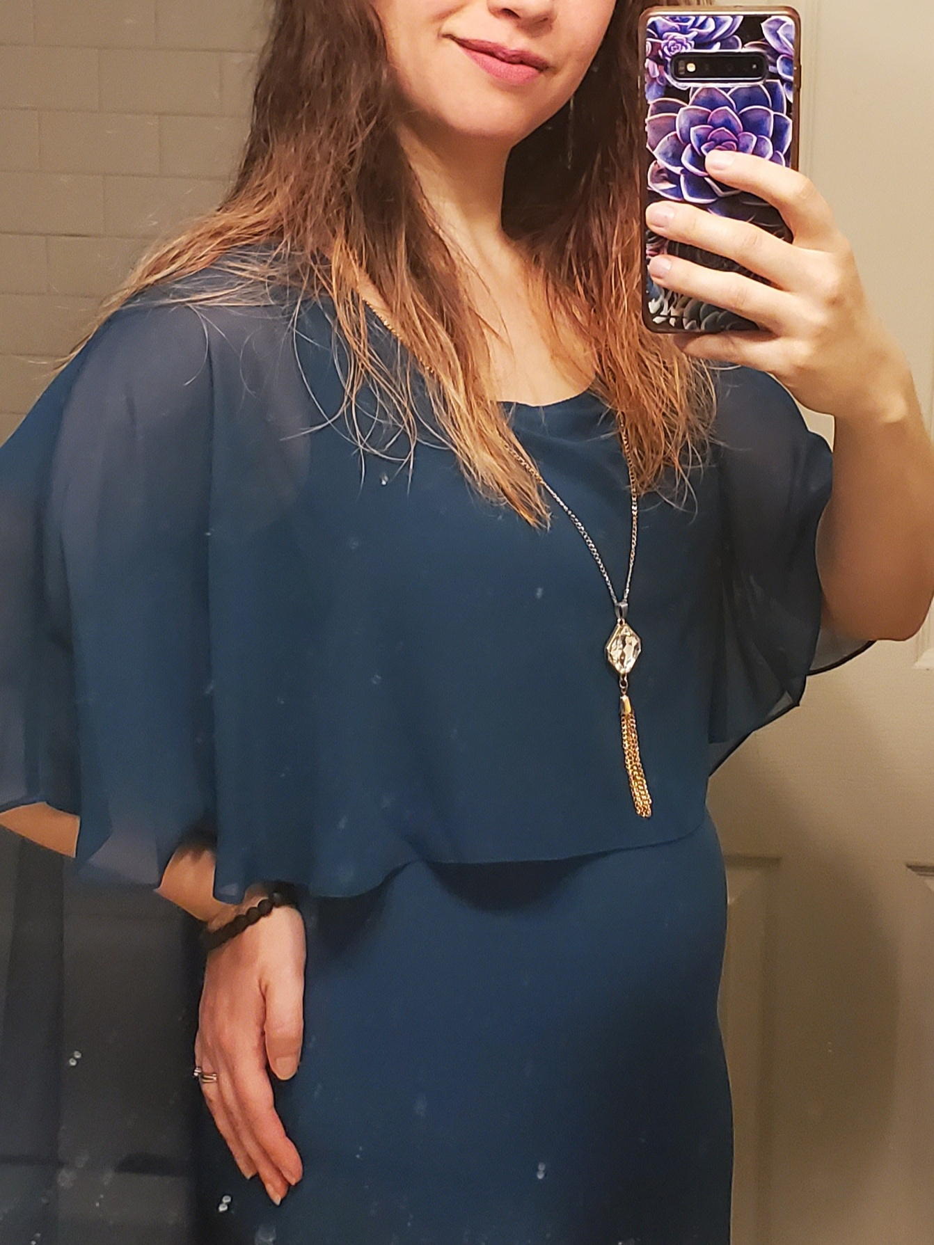 13+6 in this photo! Went on a fancy date with hubs on Sunday to celebrate our anniversary and was surprised at how much I was showing in this dress. I love my mini bump! 😍