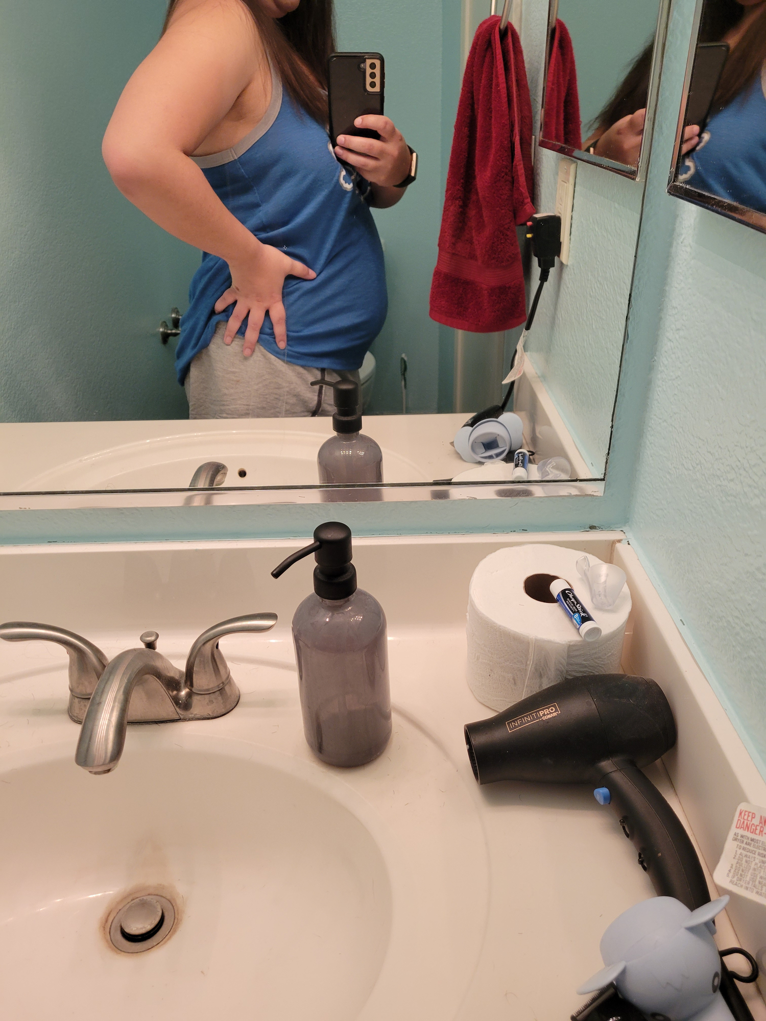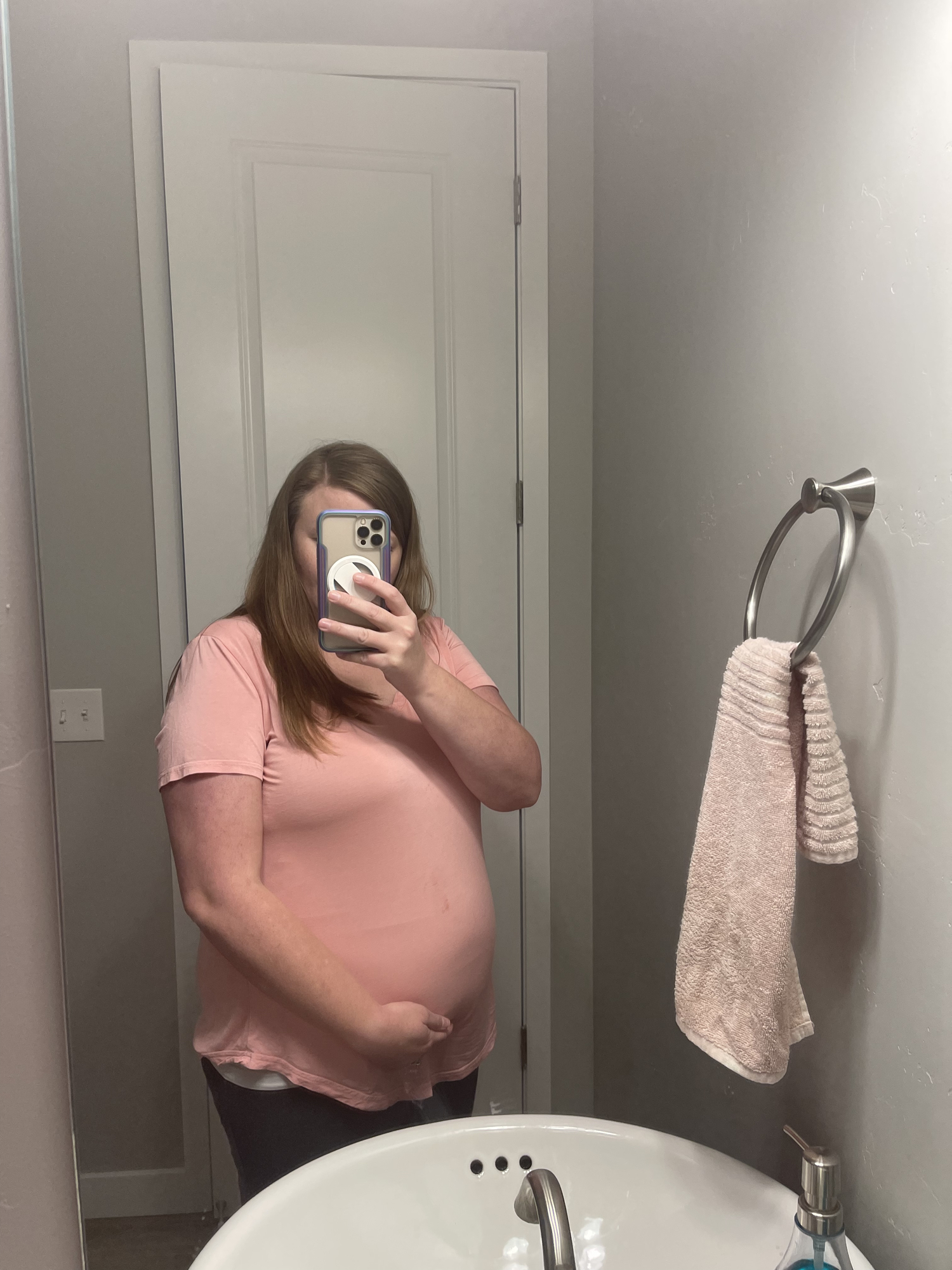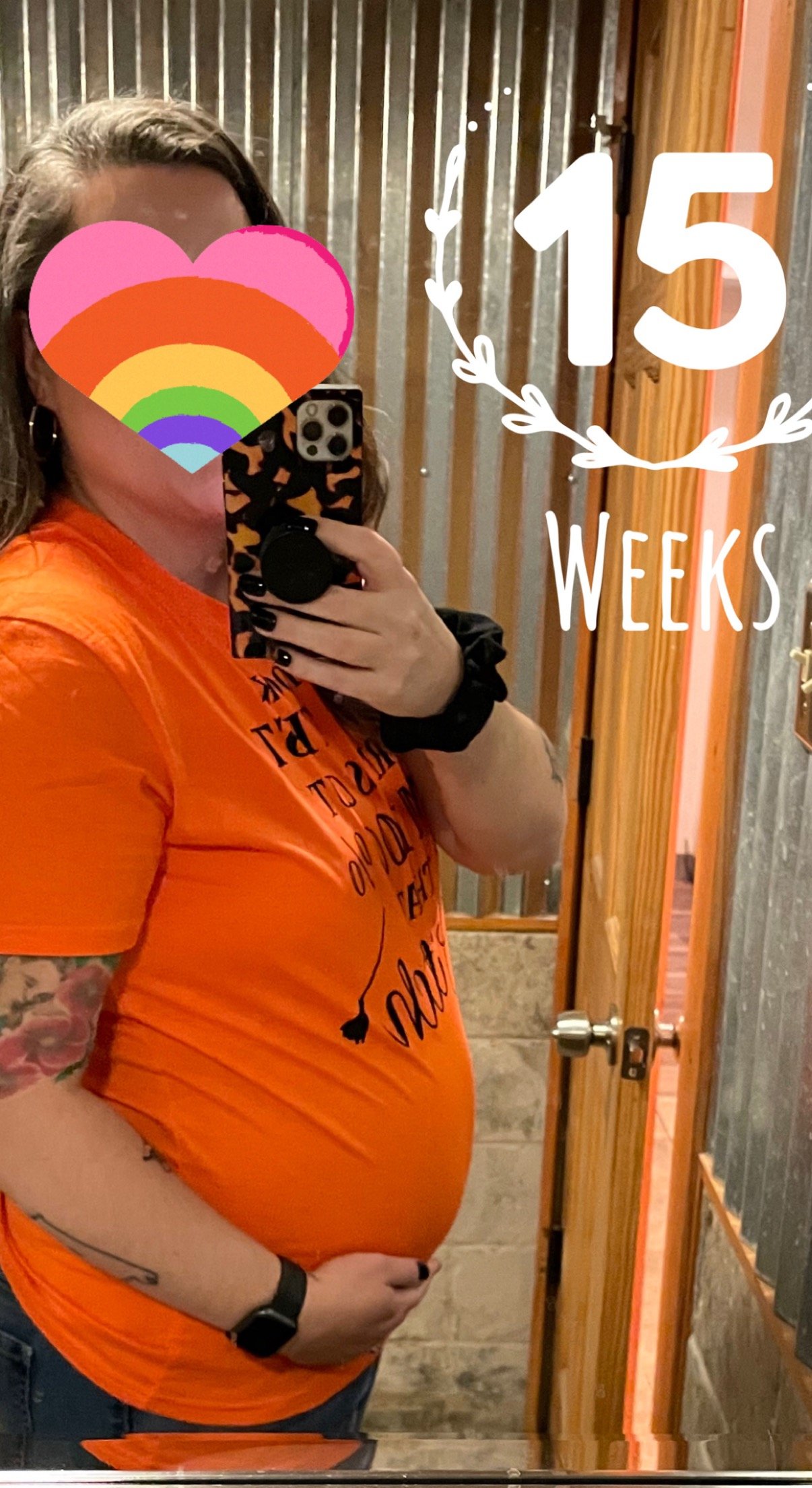 This is from Friday- today I’m 15+5. Pregnancy pants REALLY round me out.