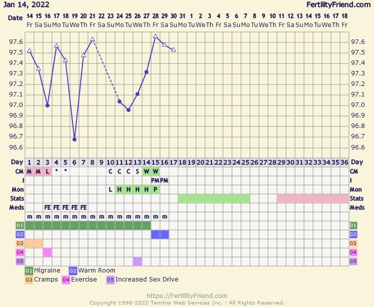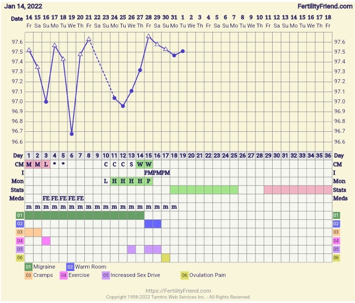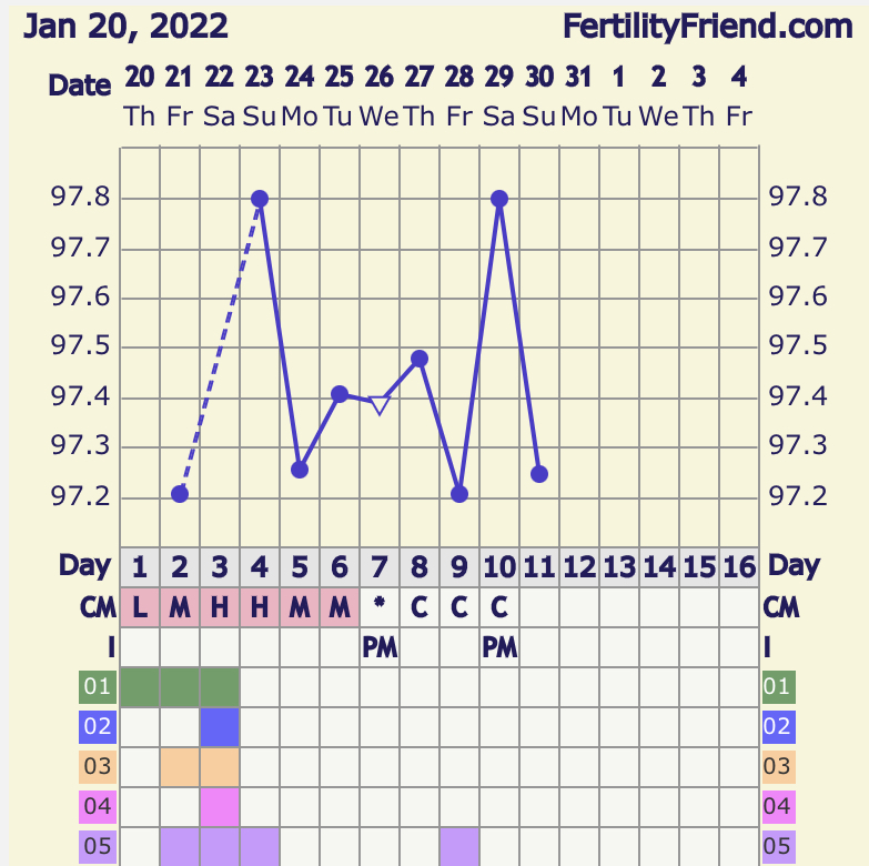 Also, I used to use this BBT adjuster if I was taking my temp at a time that wasn't in my usual window (of at least 4-5 hours of uninterrupted sleep) - https://www.whenmybaby.com/basalbodytemperature.php