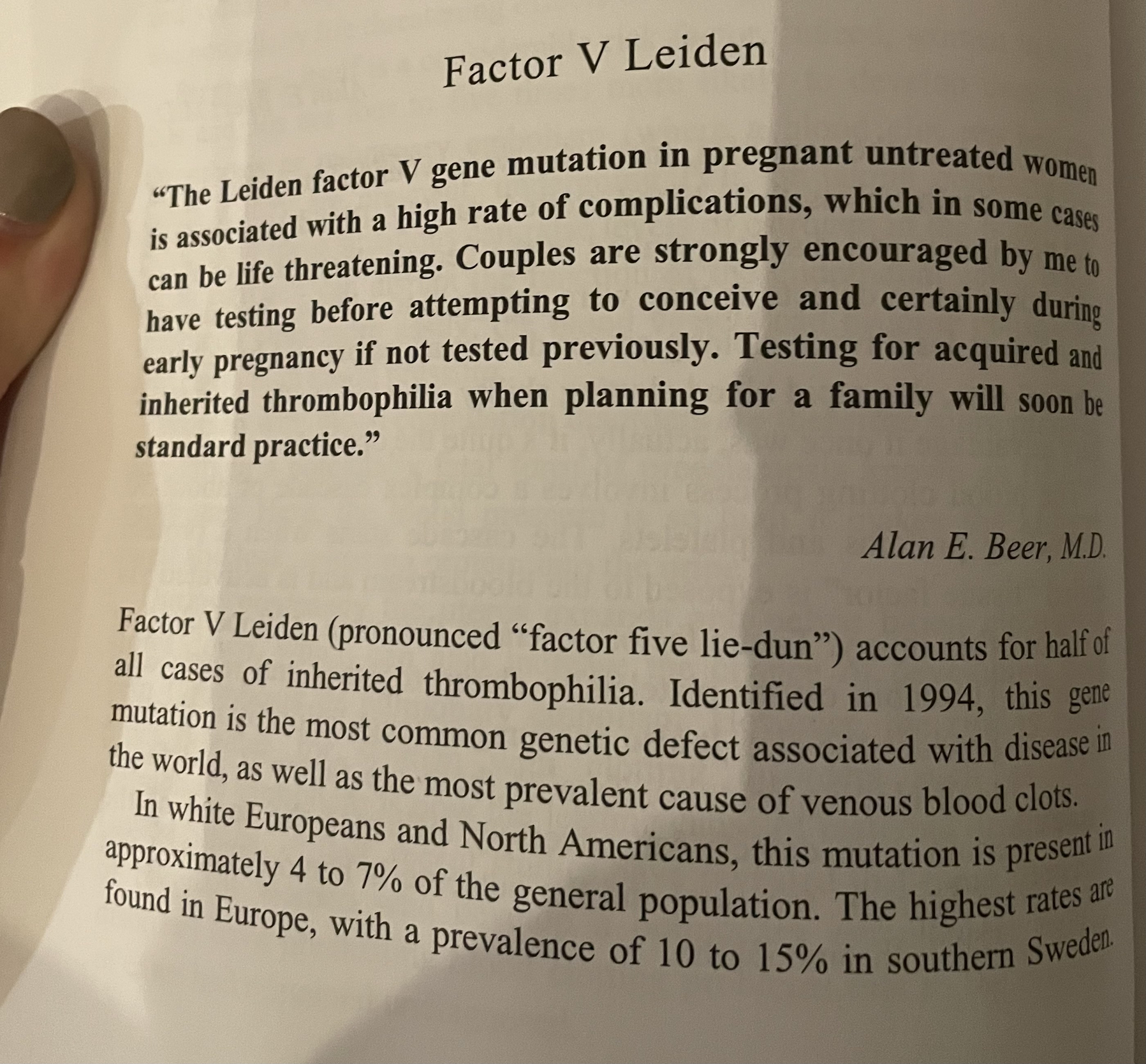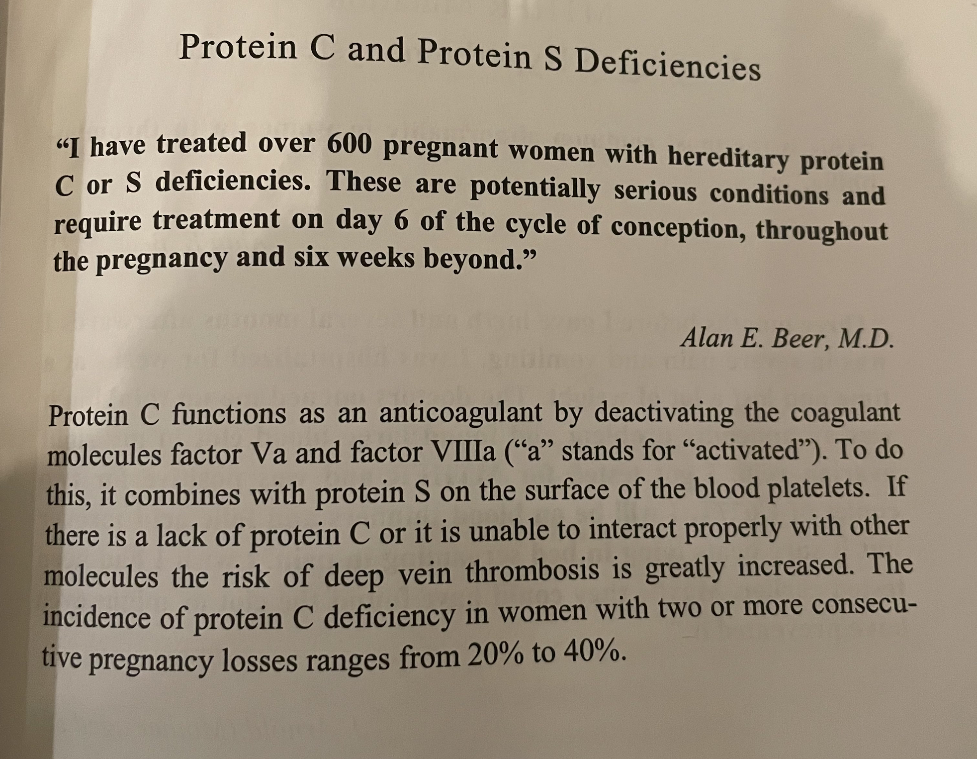 @mambo5-2 yeah, okay. It does seem like this could be the root cause of your issues. Curious… have your been tested for Factor V Leiden? Protein C, S and Factor V Leiden are closely related. Here’s what the book “Is Your Body Baby Friendly?” says about these: