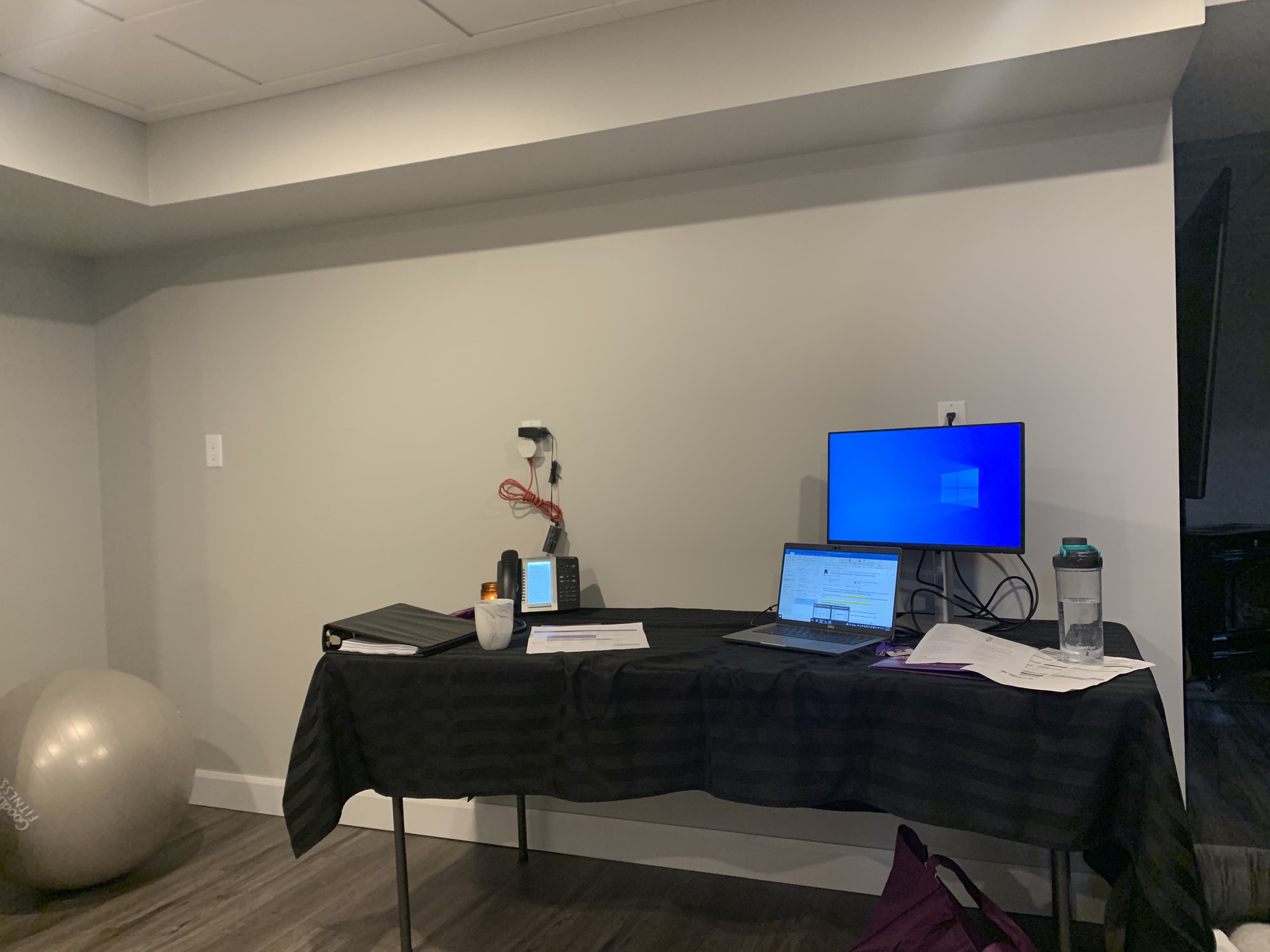 Picture below for reference! Currently using a plastic table before DH builds the permanent desk to go in this space! And second picture is what we are planning on doing!