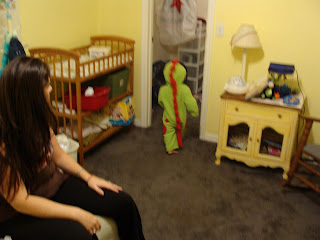 This was before he figured out how to open the chocolate and get it all over his face. I love those pictures but you can't see the costume- only his face.