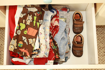 Earlier this week, I gave him his shoes and asked him to put them in his drawer. Off he went to his room.... Later that day, I went in to put laundry away. I opened the bottom drawer to put his pajamas away and just smiled.