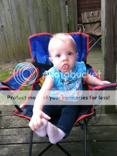 So funny! I wonder why they hate the grass so much. When I had C out on a blanket, it was like she was trapped on some island. Anytime she tried to crawl off and touched the grass she freaked.