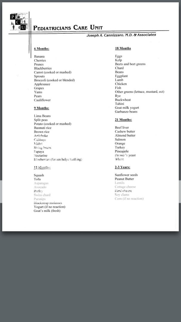 Re: 6 mo appt & Food list for babies
