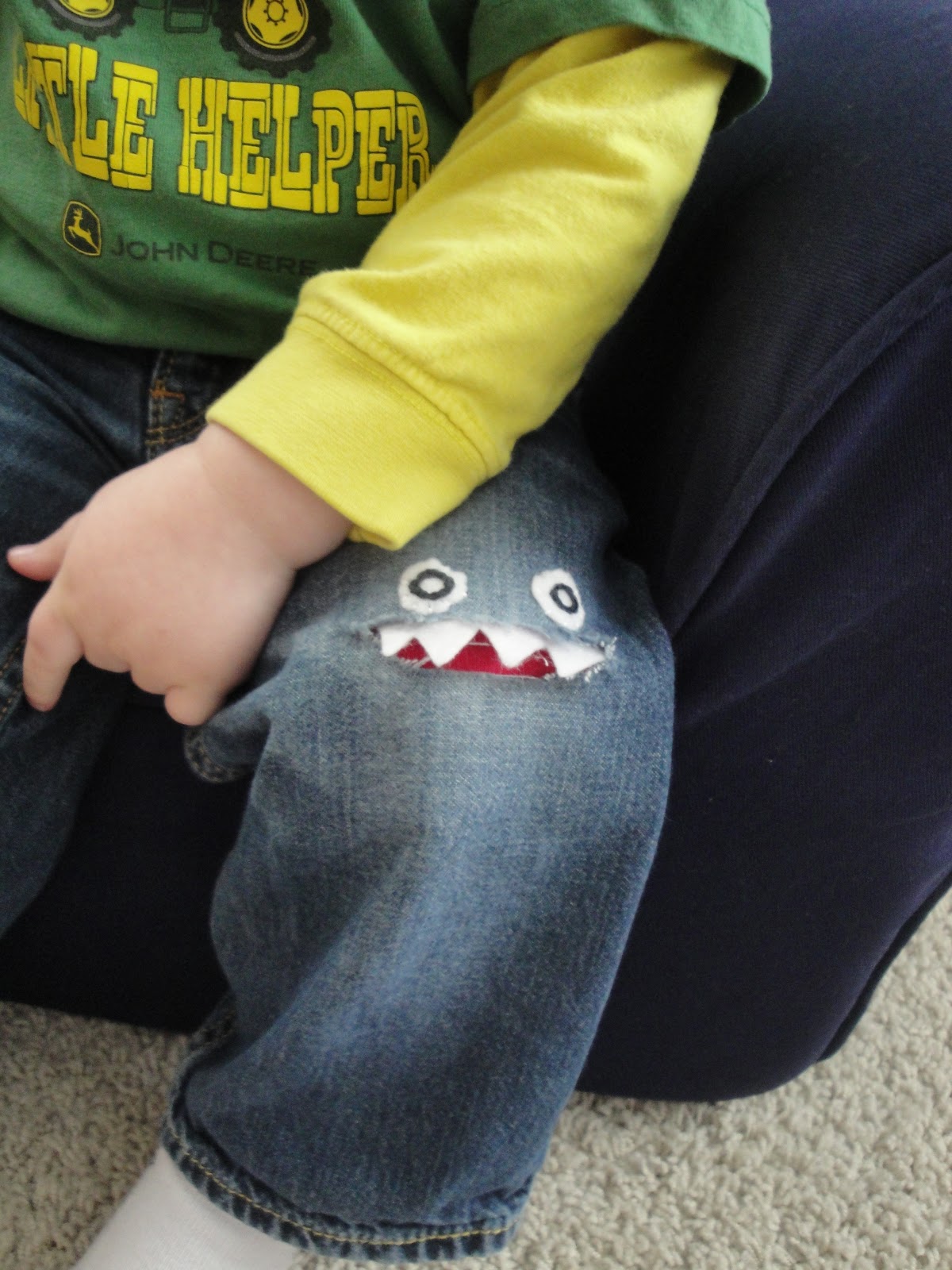 I am learning fast why my nephew had so many "patch" pants. DS came home with holes in the knees of his jeans twice in one week! I had found this idea on Pinterest and wanted to share. I wrote how I did it in my blog if you want to try it yourself. It was super easy and we have gotten a ton of compliments the two times we have worn them out