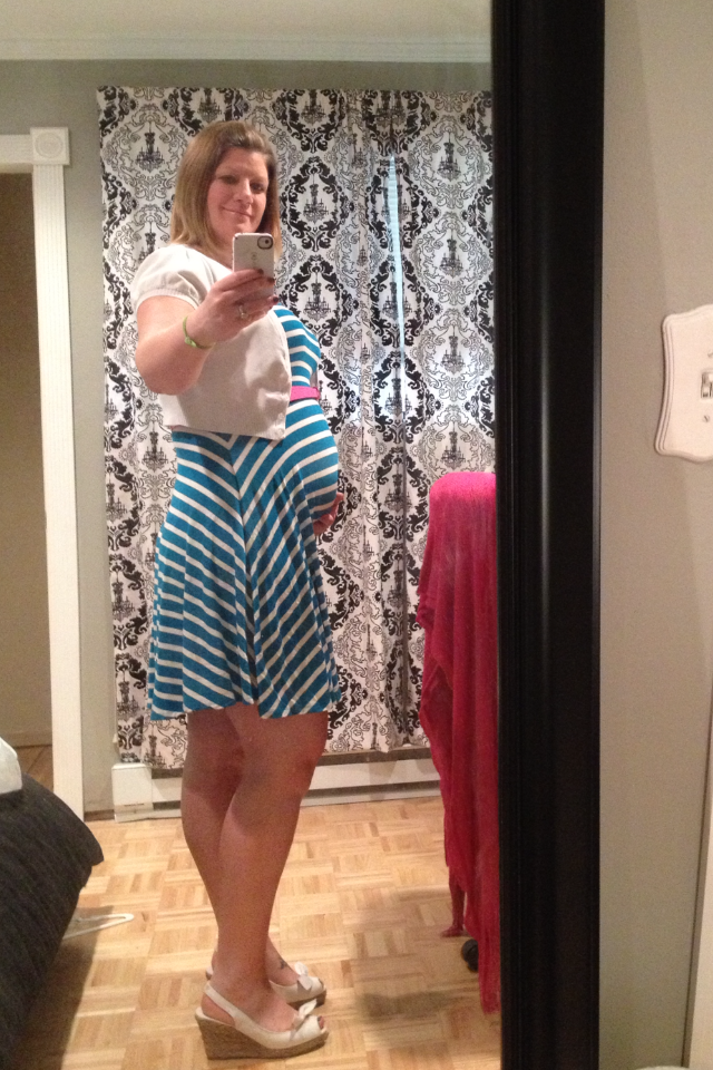 This is a pic from me heading to a wedding last week. 26w2d today. Up 10 lbs with a baby boy. I passed my GTT test - woo hoo! And will start my every 2 week appointments at 28 weeks.