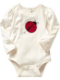 Very cute outfit! I have a onesy for our LO with a lady bug on it just like the one in the pic then on the butt of the onesy there's a smaller lady bug. I think ours is a short sleeve though...