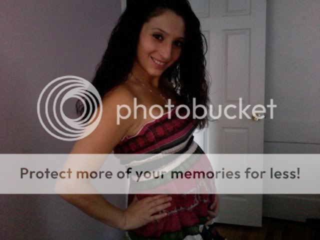 I'm so jealous of all of you! I haven't popped yet. Of course I'm super-chunks-ahoy, so I look 6-7 month pregnant (hopefully not more, eek) but still it's all just how I looked before, not baby bump worthy yet. I'm loving all your pics, esp the bikini one, I think pg women rock bikinis! I'm hoping by the time I'm half baked, one more week, that I'll at least look a little pregnant. Honestly though, you are all gorgeous!