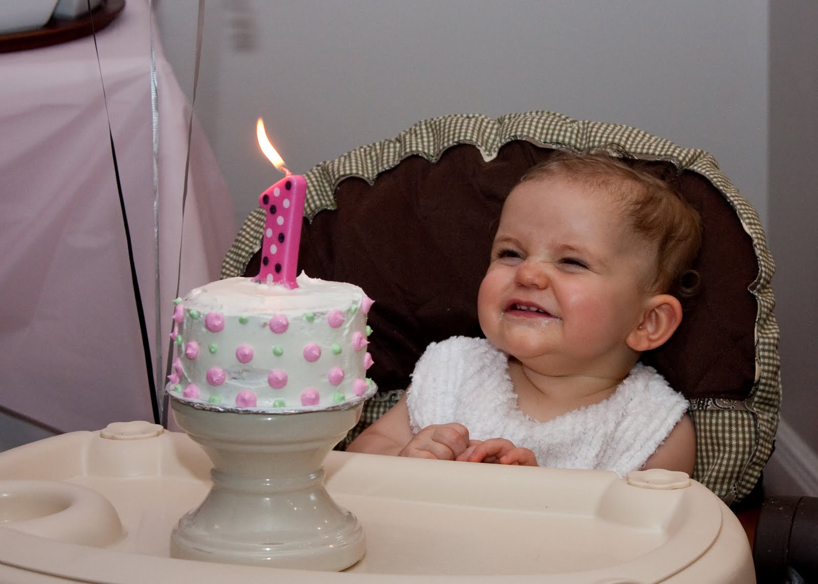 This is from Gabby's first birthday - she was smiling (sorta? lol) at my SIL taking her picture. I don't know why, but she never smiles like this for ME - only for SIL. Silly girl.