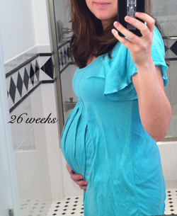 26 weeks, first baby (it's a girl), and I'm 5' and a half inch.
