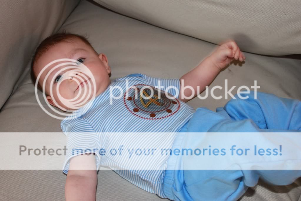 we're at the total opposite end of the spectrum...here's my chunker, in the 90th% as of his 3 month weight check...could be past that by now. last time we weighed him at home he was 18 1/2 pounds and that was 2 weeks ago. yikes.