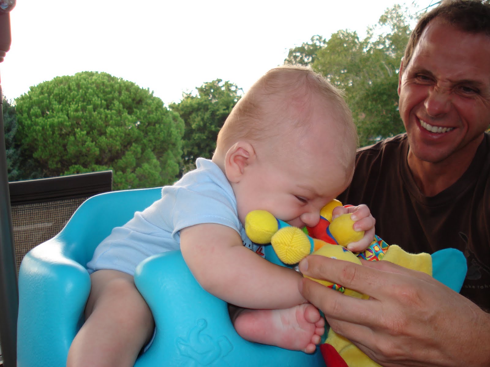 Just this week, DS has started really chomping on our fingers, his toys, DH's face, whatever he can get ahold of. He makes this attack sound and then CHOMP. He's drooling a lot but I don't see any teeth coming in. Maybe he's just pre-teething. Are your babies doing this, too? DS is 3.5 mos.